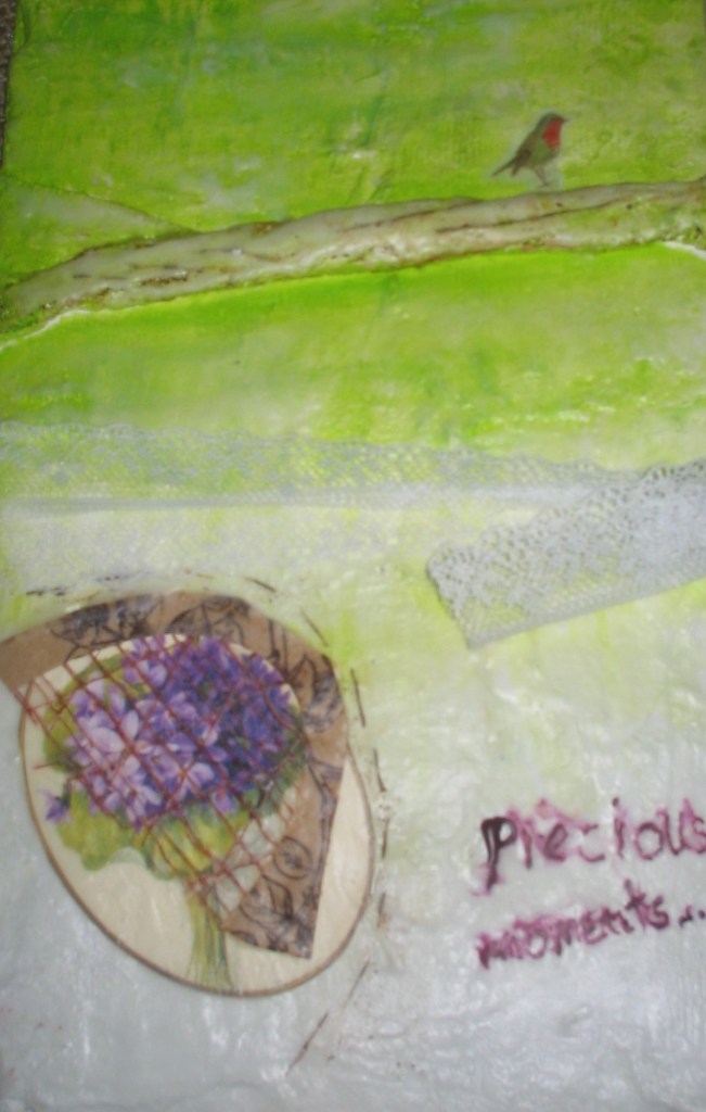 „precious moments“; Collage aus Gips, Wachs und Stoffen