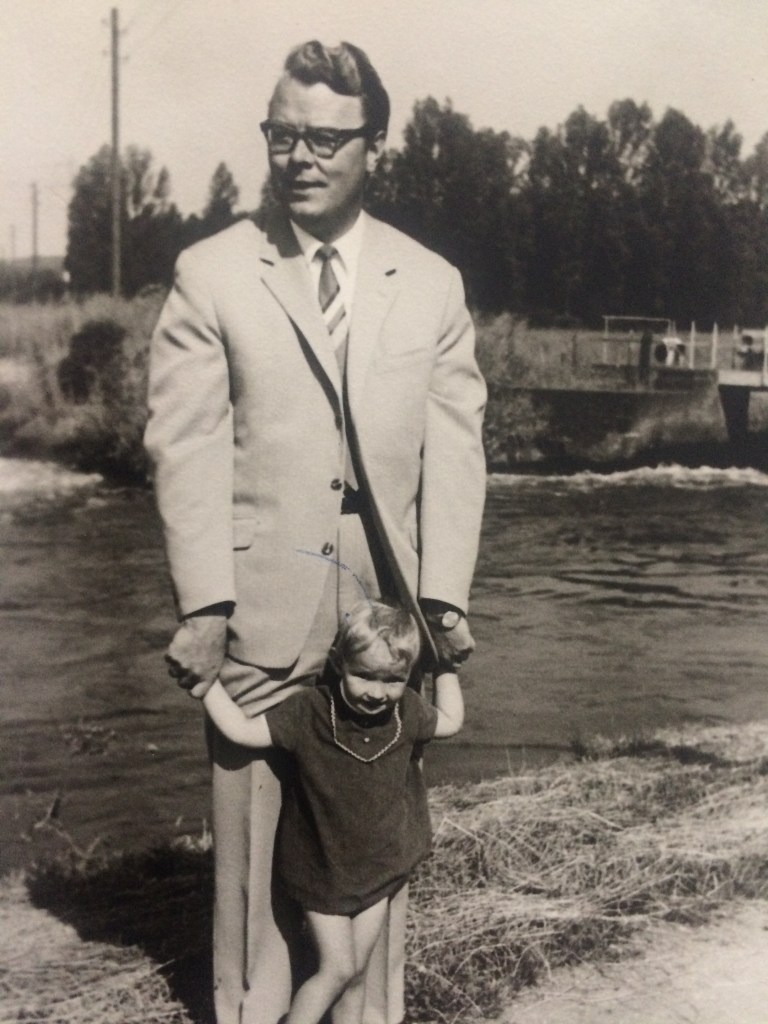 An einem Februartag nehme ich die kleine Porzellandose mit deiner Asche aus der Wohnzimmervitrine und fahre an die Erft. Ich gehe an die „Zimmerchenbrücke“, die seit einiger Zeit wegen Baufälligkeit gesperrt ist. Zu ihr gehört das Schwarz-Weiß-Foto, das mich als Vierjährige zeigt. Mit flatterndem Kopftuch, Rock, Strumpfhose und „Klubjacke“ stehe ich am Brückengeländer, mein Arm weist in Richtung unseres Bungalows und das Fenster meines „Kinderzimmers“.