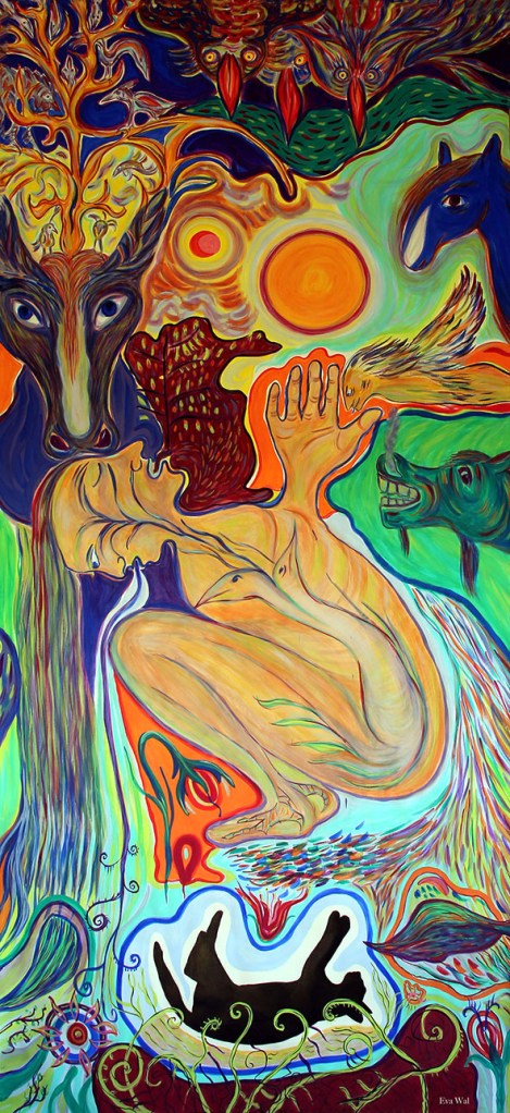 Eva Wal, Lyrik und bildende Kunst. Gerne verbindet sie Sprache und Klang, Wort und Bild zu einer eigenen Schöpfung wie zum Beispiel einem Videogedicht oder einem Gesamtkunstwerk.