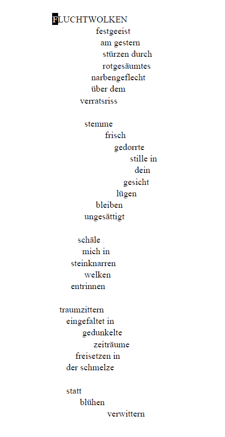 Dr. Elsa Solaris wohnt in Berlin und London, hat in neun Ländern gelebt und schreibt auf Deutsch und Englisch. Mehrere Veröffentlichungen von Lyrik und Prosa, u.A. der preisgekrönte Podcast-Thriller Forest 404 der BBC, Homunculus (Seitenstechen #2), Metamorphosen (Superpreis Anthologie), etcetera, Virtual Futures in London, lobende Erwähnung von Writers of the Future in Los Angeles, Longlist des Young Storyteller Awards in Wien (2022).