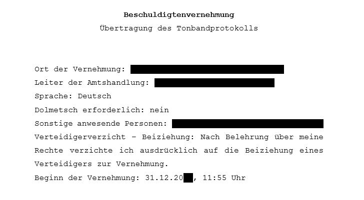 Die Vernehmung wird um 11:59 Uhr unterbrochen.