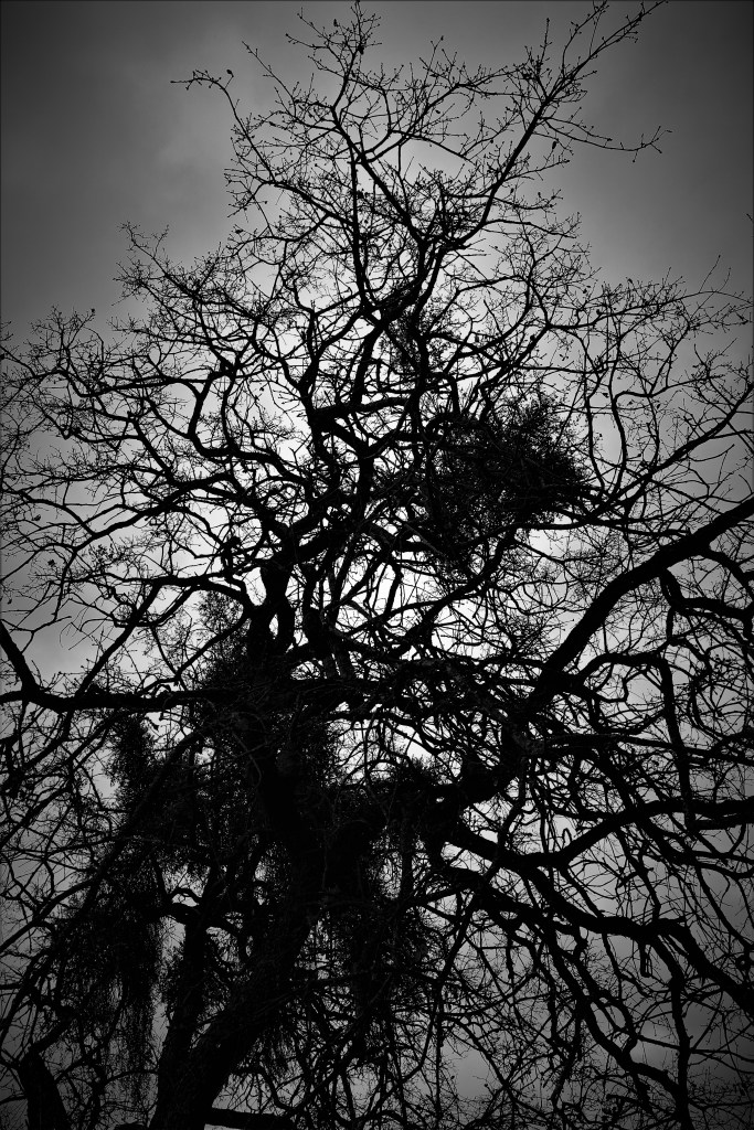 Der Wind wirbelt ihre Arme in deine Richtung und sie versuchen, nach dir zu greifen. Erwischen eine Haarsträhne, ziehen daran. Du erschreckst und drehst dich um, aber da ist nichts. Nichts, was du sehen kannst, denn es herrscht Finsternis.