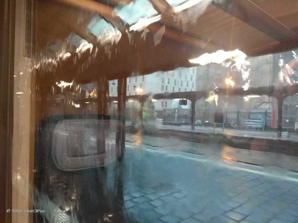 Durch die Glasscheibe betrachtete er die Spiegelung des Abteils. Sein gedoppeltes Eigenbild erschreckte ihn fast. Er fragte sich, wann er so alt geworden war. Gleichzeitig konnte er sich nicht daran erinnern, jemals anders ausgesehen zu haben. Sein Spiegelbild lächelte ihn an.