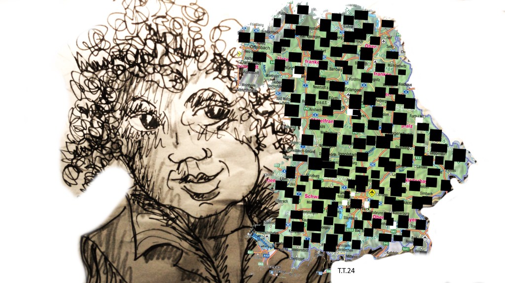 Hannerl: Faszinierend finde ich nun, dass man Denk- und Handlungsmuster auch bildlich darstellen kann. Wenn ich z.B. auf einer Landkarte von Bayern all´ die Orte schwarz einzeichne, in denen gemäß des Cannabisfolgebegrenzungsgesetzes das Kiffen verboten ist, dann ergibt sich ein beklemmendes Muster staatlicher Maßregelung.