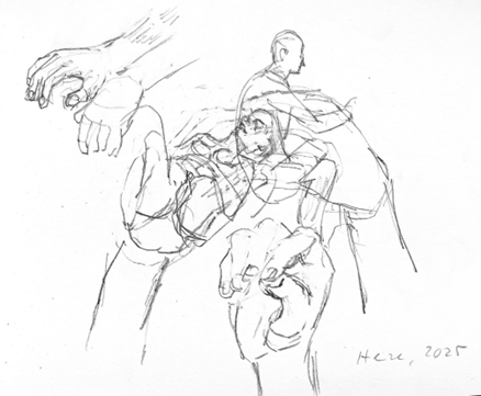 „Der Mann ihrer Wahl“ ist eine bisher unveröffentlichte Kurzgeschichte zum #kkl-Thema Hingabe. Sie ist als Teil ihres längeren Prosawerks „Die Notwendigkeit sich hinzugeben“ konzipiert. Die Bleistiftzeichnungen thematisieren die Sehnsucht nach Berührung und der Angst vor derselben.