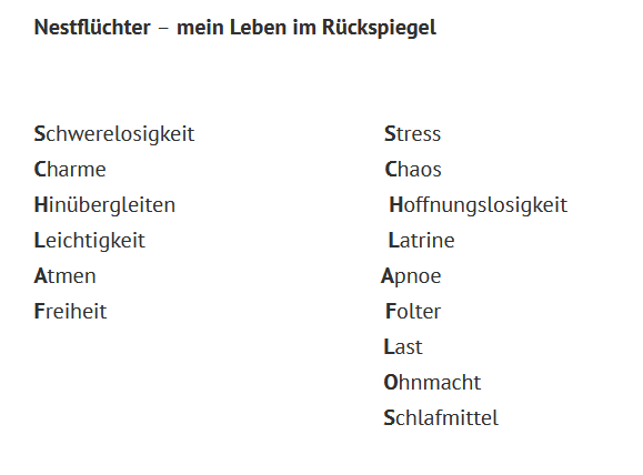 Doch der abendliche Gang ins Schlafzimmer hat nichts mehr mit Leichtigkeit zu tun, er ist zur Last geworden, das Bett zum Folterinstrument. Rituale sollen den Stress abbauen, der mich am Einschlafen hindert. Um zu verhindern, dass Hoffnungslosigkeit und Ohnmacht die Oberhand gewinnen, mir mit kalten Fingern die Augenlider gegen meinen Willen aufreißen.